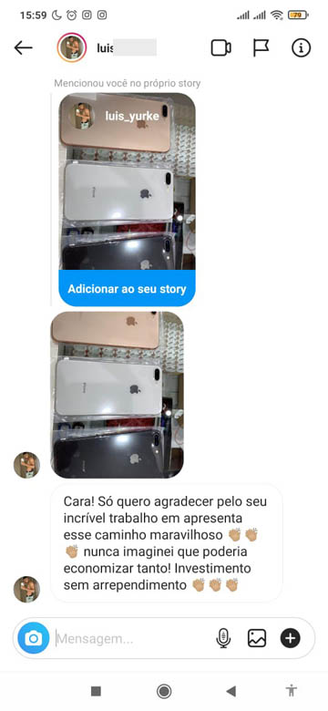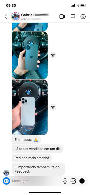 E porquê eu digo isso? Em uma breve análise com base nos nossos alunos, percebemos que o prazo de venda de um iPhone é de 1 a 2 dias. Ou seja, você compra um iPhone barato com nossos fornecedores hoje, e no máximo até depois de amanhã já vendeu e lucrou entre R$700,00 e R$1.200,00. Tudo isso em 2 dias.