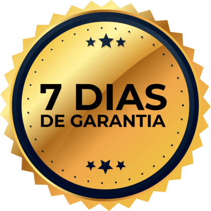 Isso dentro do prazo de 7 dias. Você pode testar, estudar, aprender e caso não goste, pode pedir reembolso de 100% do dinheiro em 7 dias que eu devolvo tudo pra você, sem letras miúdas.